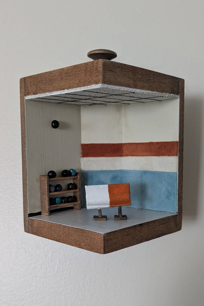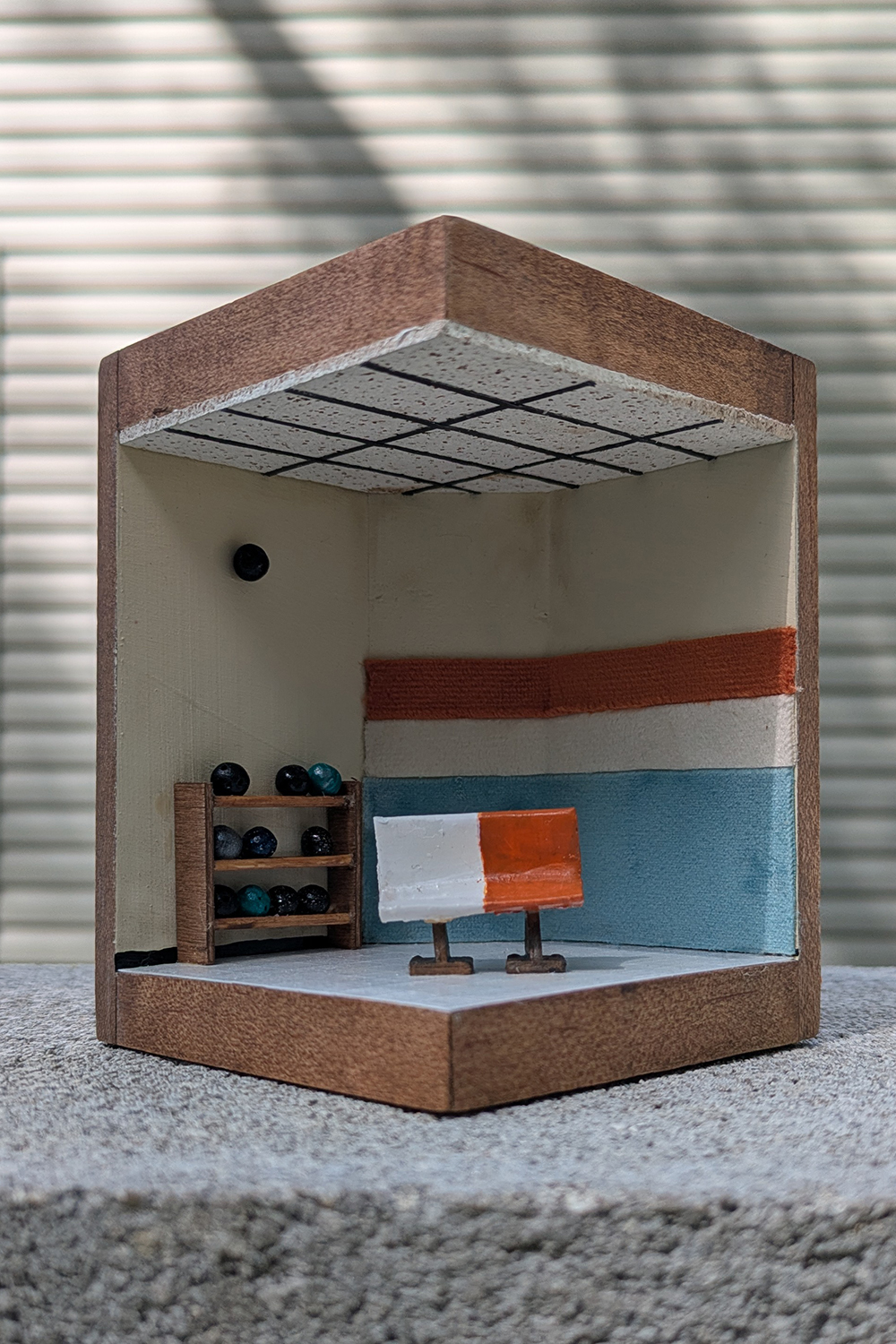 Diorama, 2025 This diorama project depicting a bowling alley was created as a personal project in 2025. Using an old drawer as a base, materials used include plastic, fabric, cork, and clay. Project TypePersonal ProjectYear2025ShareTwitter-newFacebookShare-emailCopy URL to clipboard